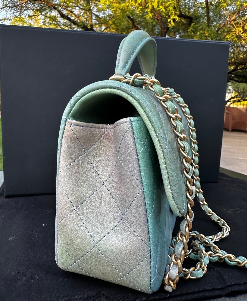 NWT Chanel Mini Rectangular Flap Bag with Top Handle Green Ombré Lambskin